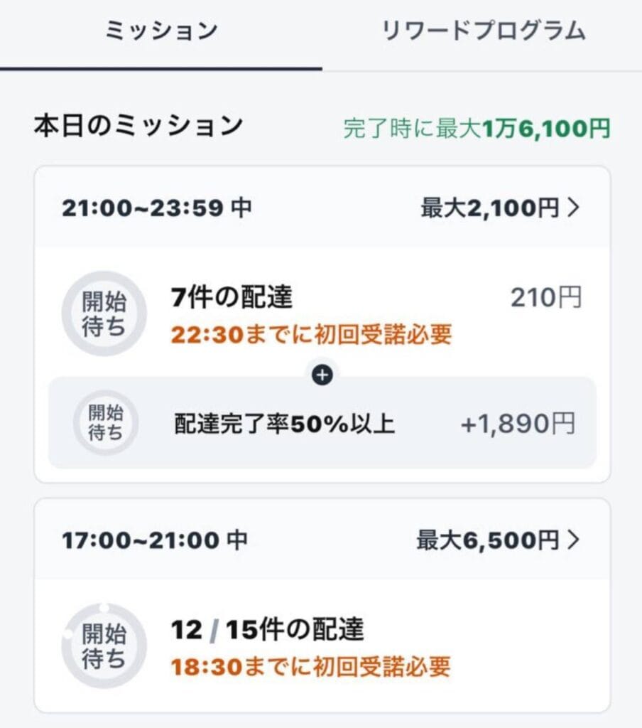 例えば、ミッションの有無や注文の入り方を見て、「今日は稼げる日かどうか」を判断し、稼げるタイミングに合わせて稼働できる人は相性が良いです。